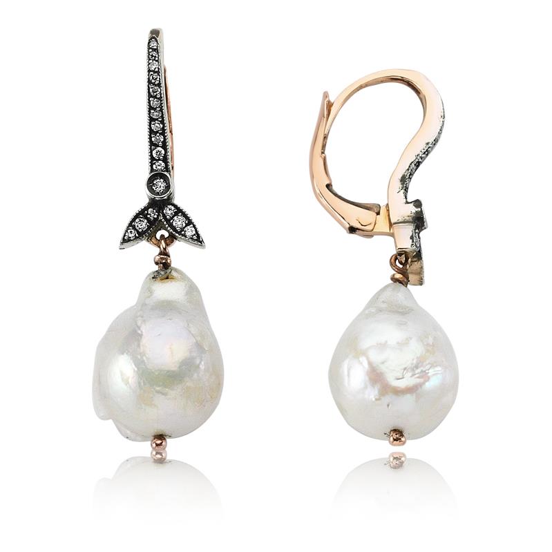 Pırlanta Barok İnci Küpe Rose Altın