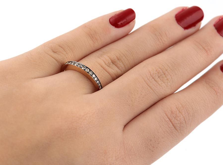 Bu model yarım tur alyansı siyah beyaz kanyak pırlantalı alyanslarla beyaz altın ve sarı altın